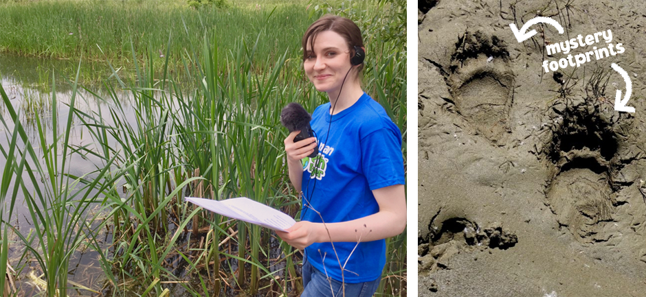 While recording this episode of the Earth Rangers’ Podcast, Emma headed out to a nearby marsh to get the real wetland experience and while there, she discovered some very cool footprints in the mud.